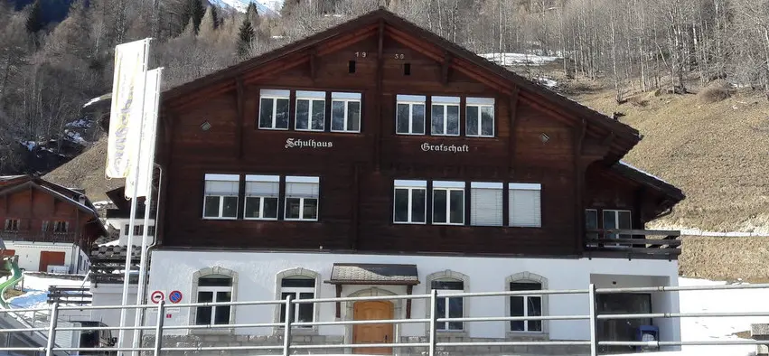 - Lage: befindet sich ausserhalb des Dorfes, einige Minuten Fussmarsch entfernt vom Bahnhof Gluringen; Metzgerei, Bäckerei und Volg rund 15 Minuten Fussmarsch entfernt (Lieferung evtl. vor Haustür)